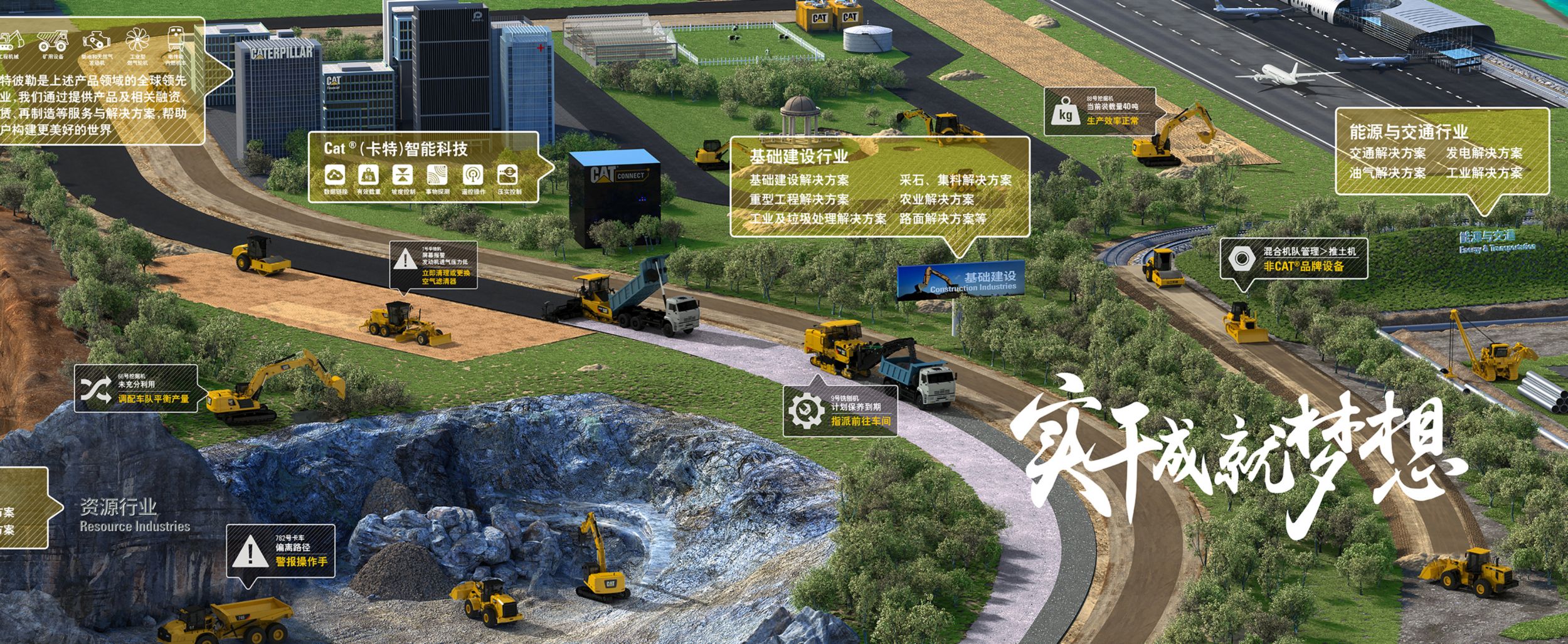 卡特彼勒主要生产挖掘机、发电机。下图引自卡特彼勒中国网站之行业解决方案,可体会卡特彼勒主要生产什么,用于什么行业和场景。