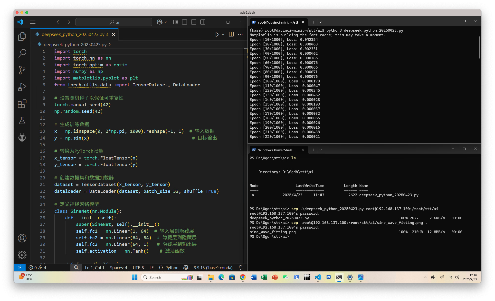 scp root@192.168.137.100:/root/stt/ai/sine_wave_fitting.png .(最后有个点,表示复制到本地 PC 机的当前目录中。如要复制到其他目录中,请替换为本地 PC 机的目录名。)