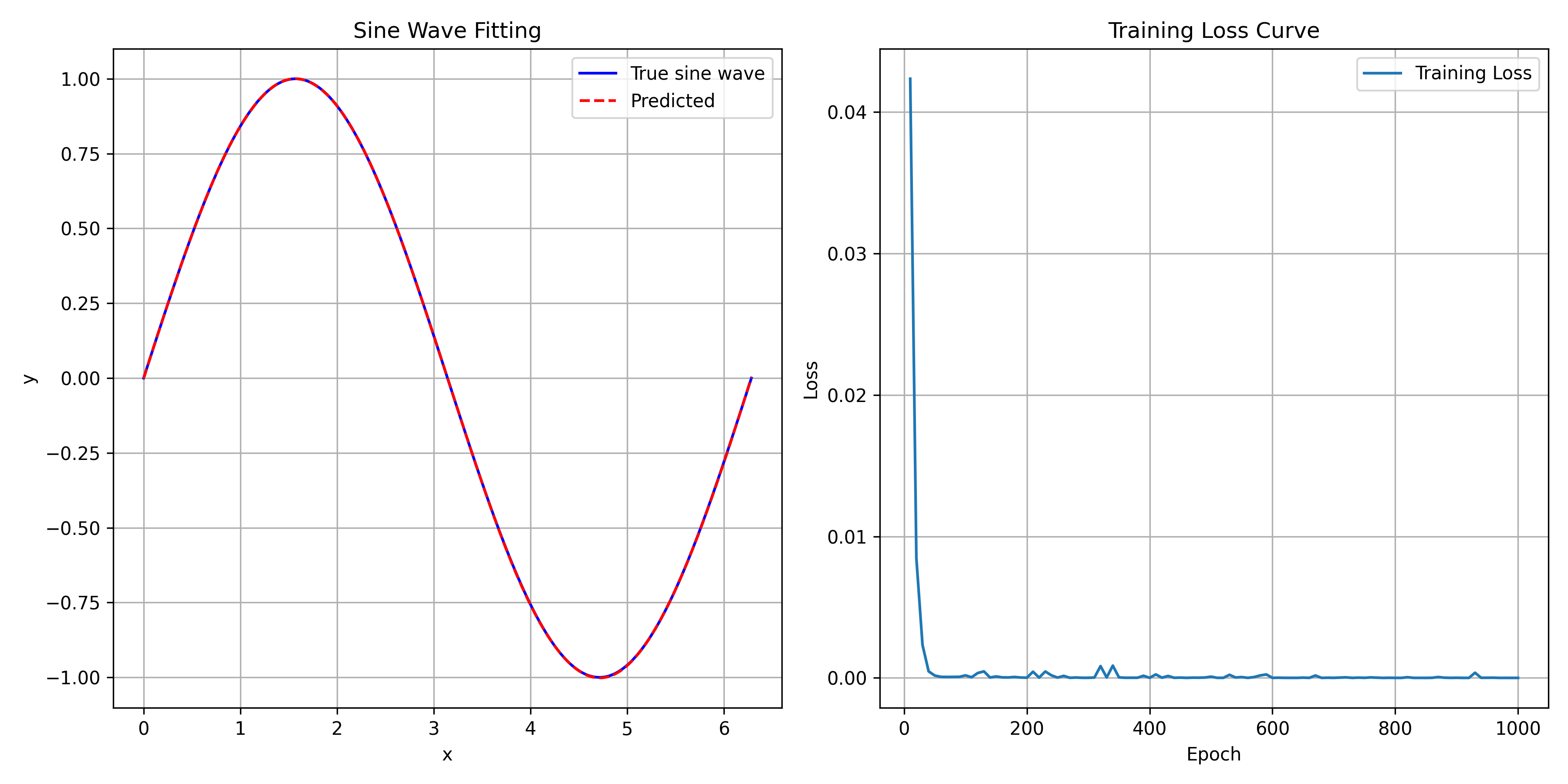 以下以 Python + PyTorch + 拟合正弦样本数据 为例,供实验操作参考。